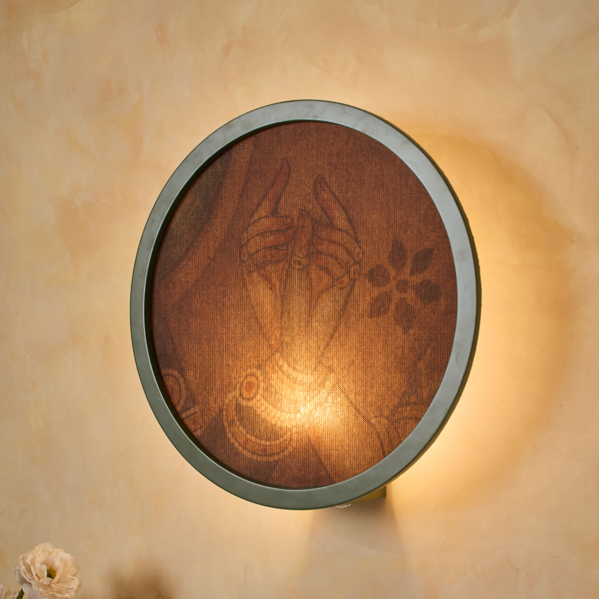 Inspired by the traditional vintage hand gestures of Krishna and Radha, the Aloka Chitra - Serene Gesture, is a soulful wall-hanging light that doubles as fine art. This piece features a wooden finish and delicate blind materials, meticulously crafted to blend heritage with modern elegance. With exceptional attention to detail, it filters light to create a warm glow with an attached bulb holder, serving as both a functional luminary and a captivating decor statement.