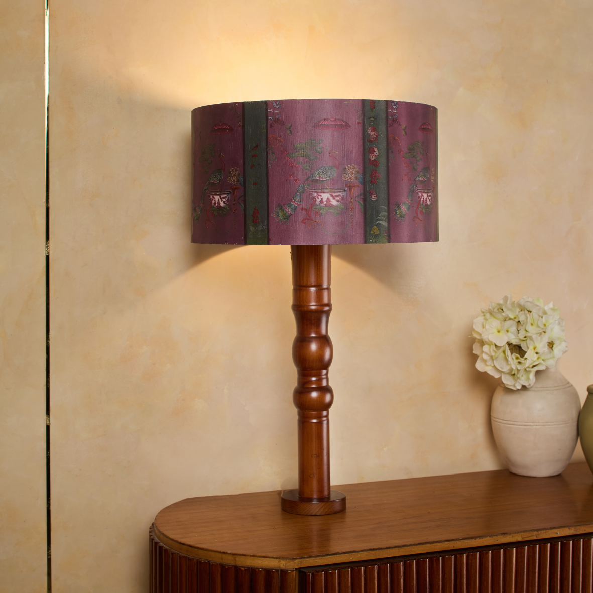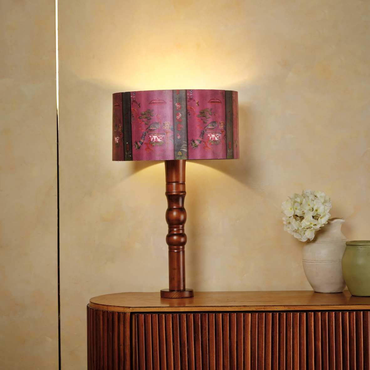 Reflects artistic elegance through its beautifully illustrated design Sadvrtti Pidam – Chinese Peacock, featuring a peacock adorned with intricate details. Crafted with precision using flexy wood, the lampshade highlights fine patterns and refined craftsmanship. The careful attention to detail and smooth finish enhance its graceful style, while the gentle light it emits creates a warm, inviting glow that adds charm and serenity to any living space.