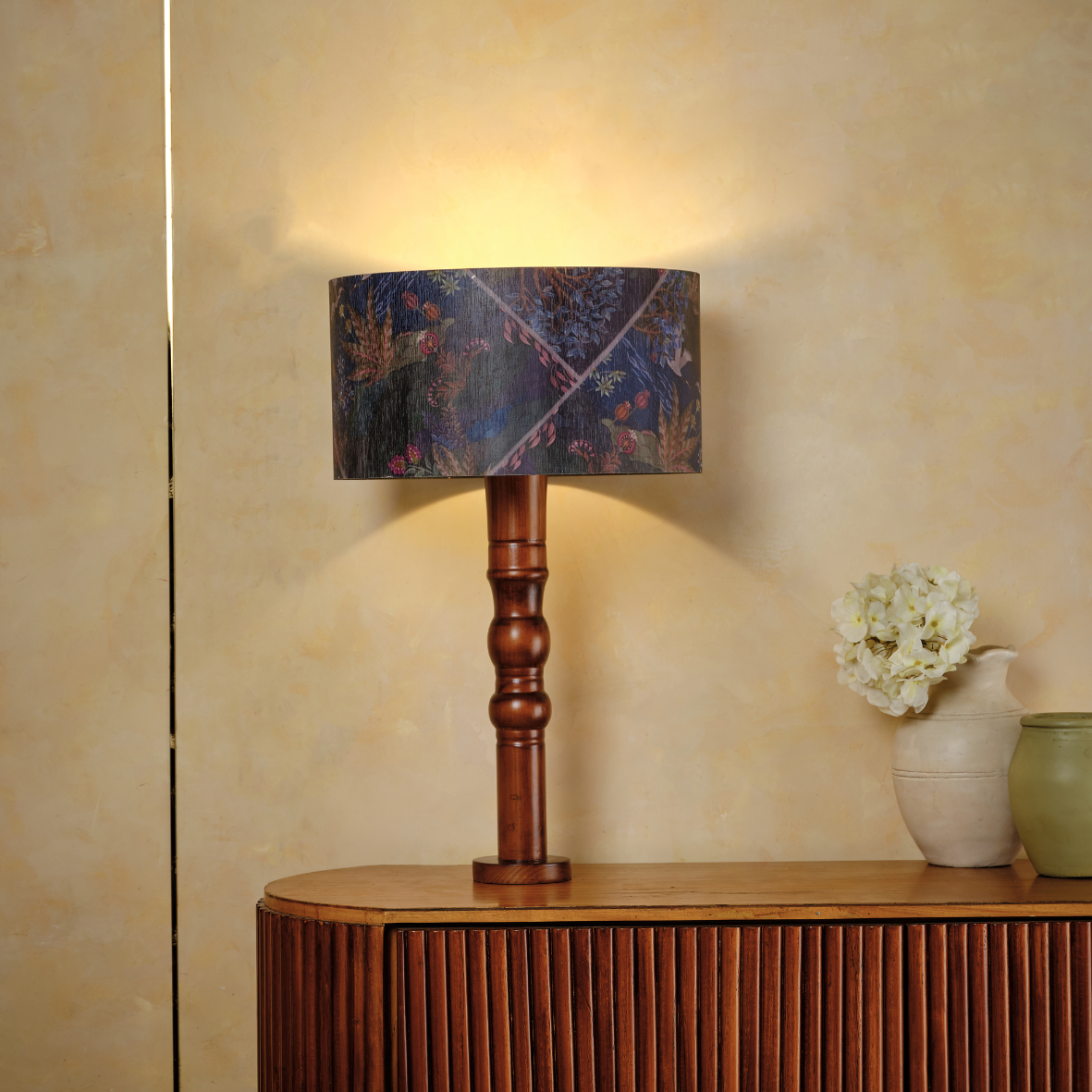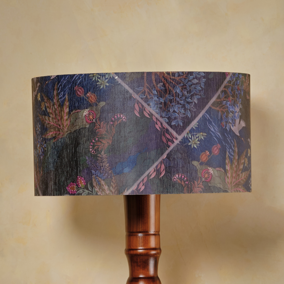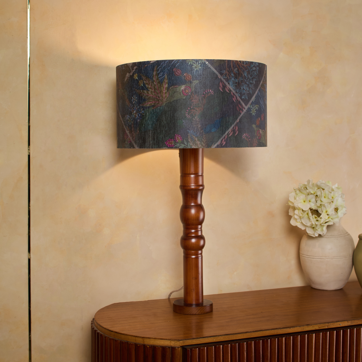 An elegant lamp Sadvrtti Pidam – Lost In Dreams, that celebrates the beauty of blossoms flowing across rich shades of blue. The thoughtfully designed shade highlights delicate floral patterns, bringing a sense of calm sophistication to any space. Crafted with flexy wood and finished with careful attention to detail, it radiates a soft, warm glow, blending refined style with timeless charm to enhance the ambiance of your home.