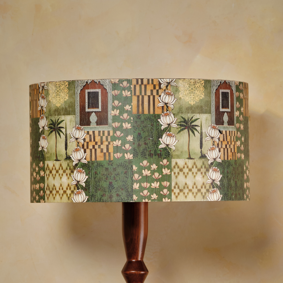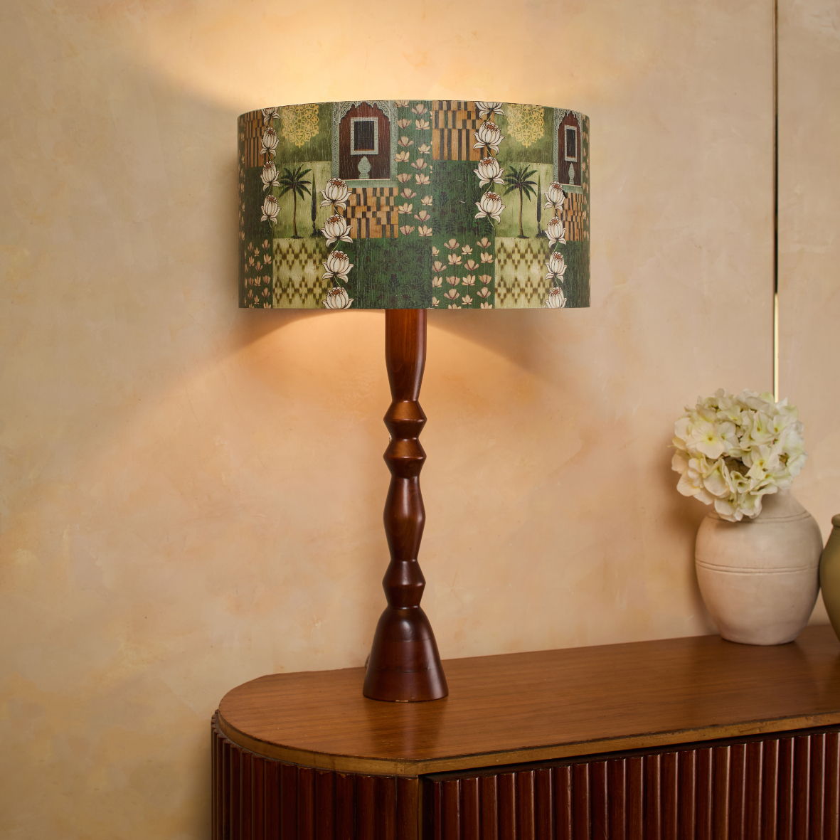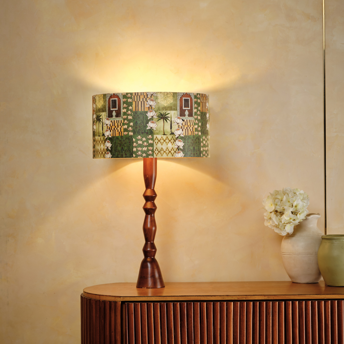Sadvrtti Pidam – Patterns of Heritage, is a beautifully crafted lamp that blends traditional patterns with contemporary elegance. Its patterned shade celebrates timeless design motifs, while the finely shaped base adds classic charm. Made with a flexy wood finish, it radiates a soft, warm glow, creating a cozy ambiance and bringing heritage-inspired beauty and sophistication to any living space.